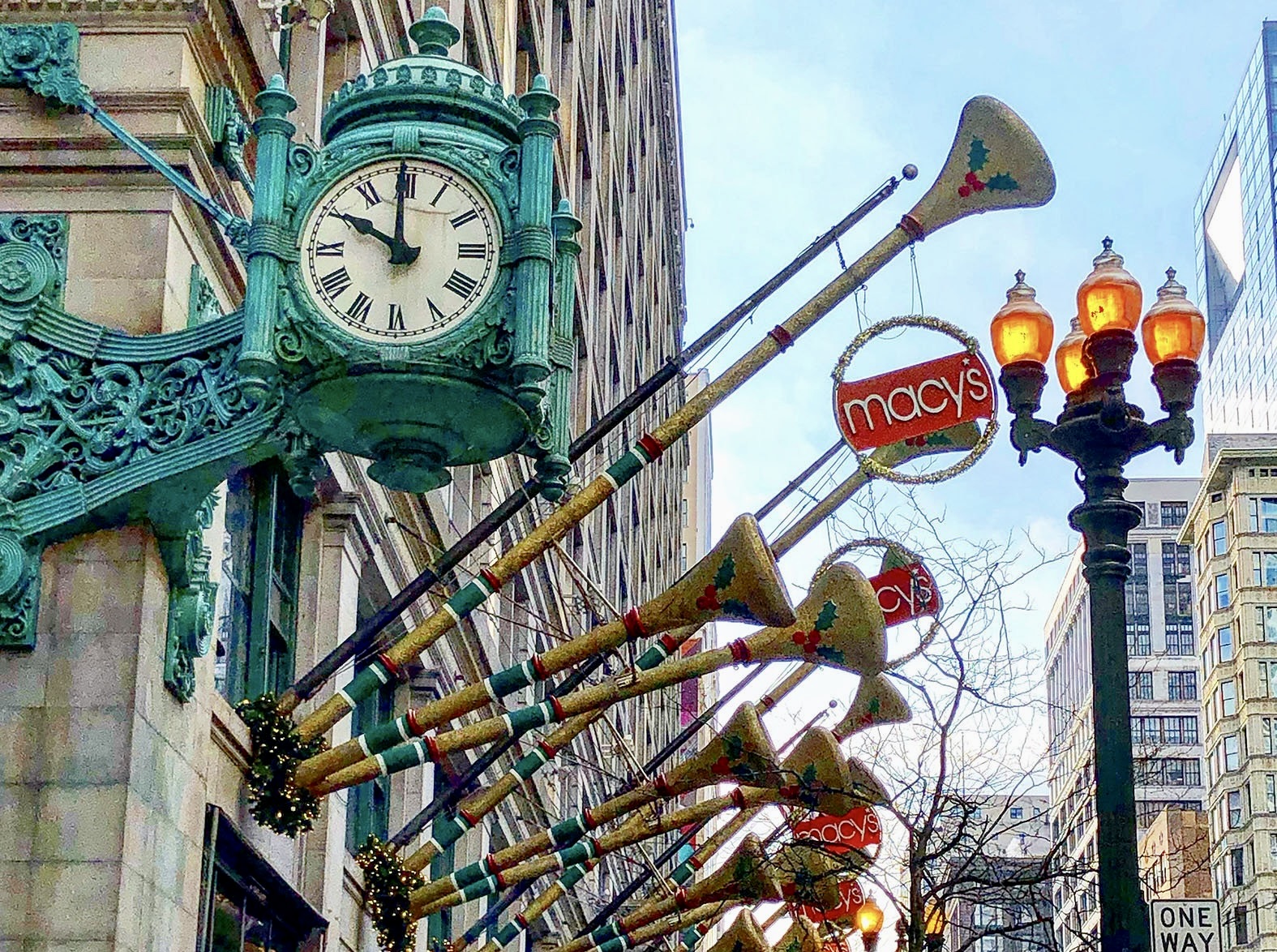 From there, we make our way above ground to Macy’s department store where we view the famous Tiffany Ceiling, the Great Tree in the Walnut Room and the store’s decorated holiday windows on Randolph and State Streets.